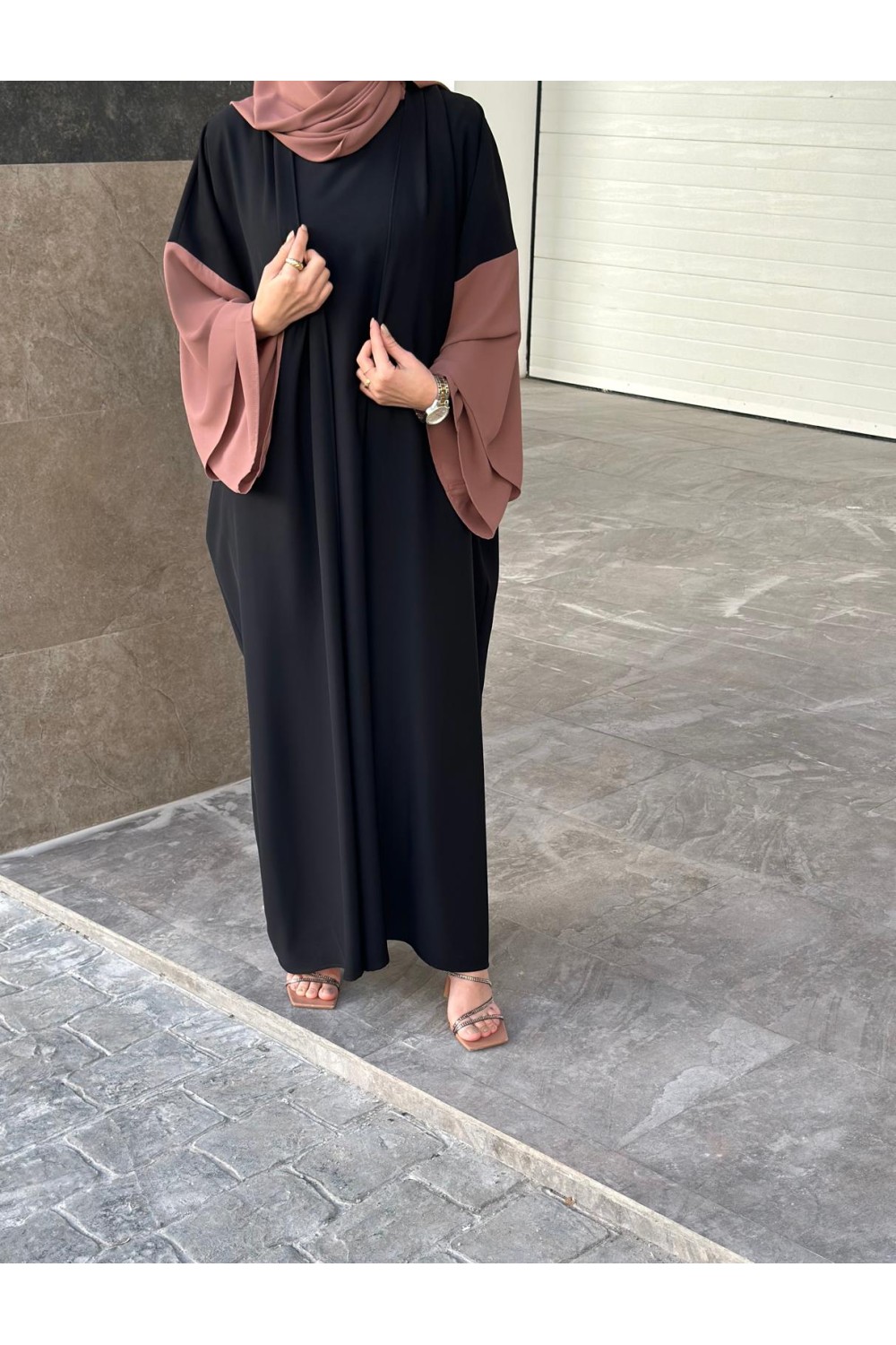 High-quality MATE silk crepe abaya with sleeves lined in premium chiffon