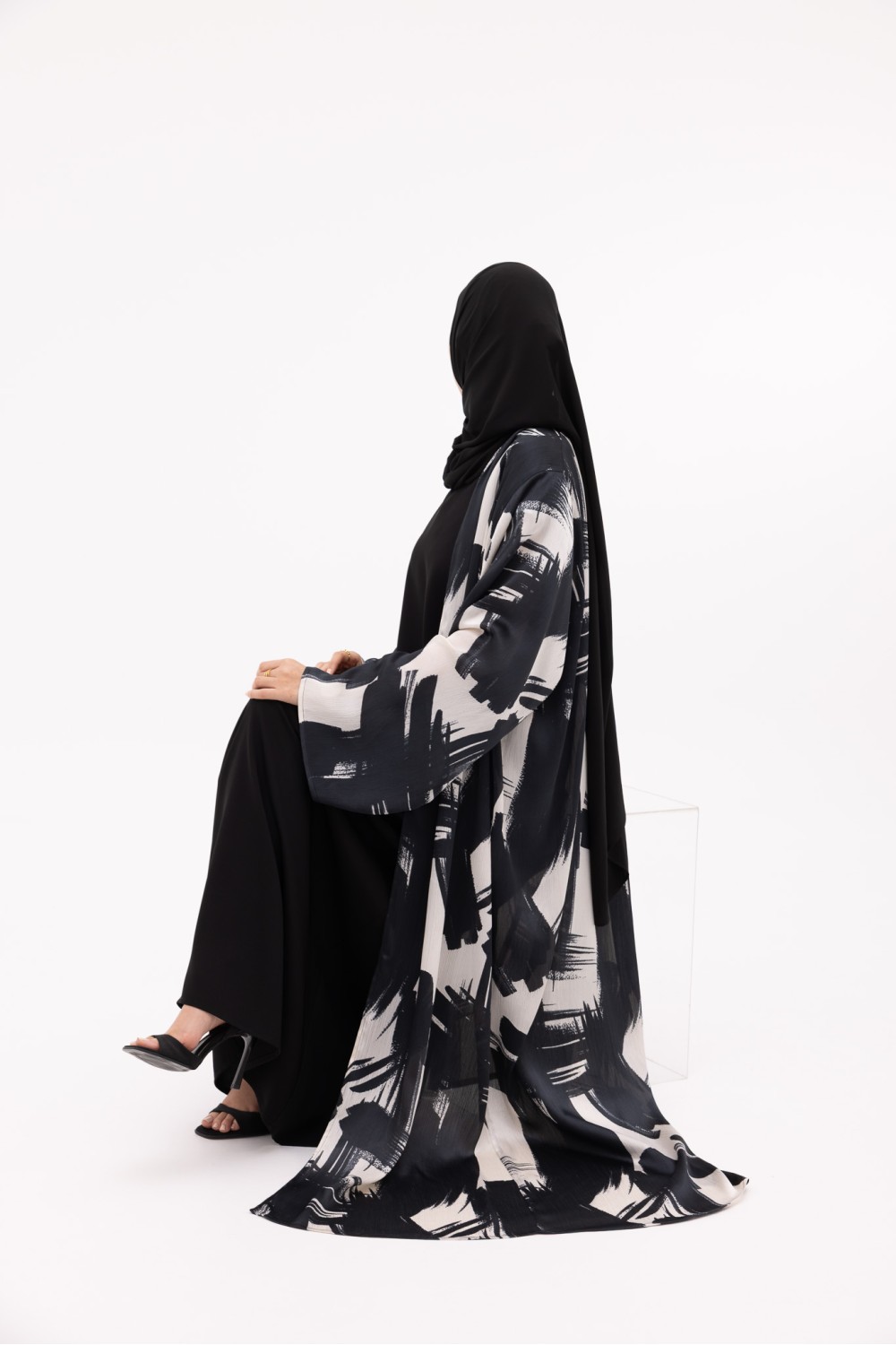 The Jimena abaya is a printed fabric abaya designed for the spring season.