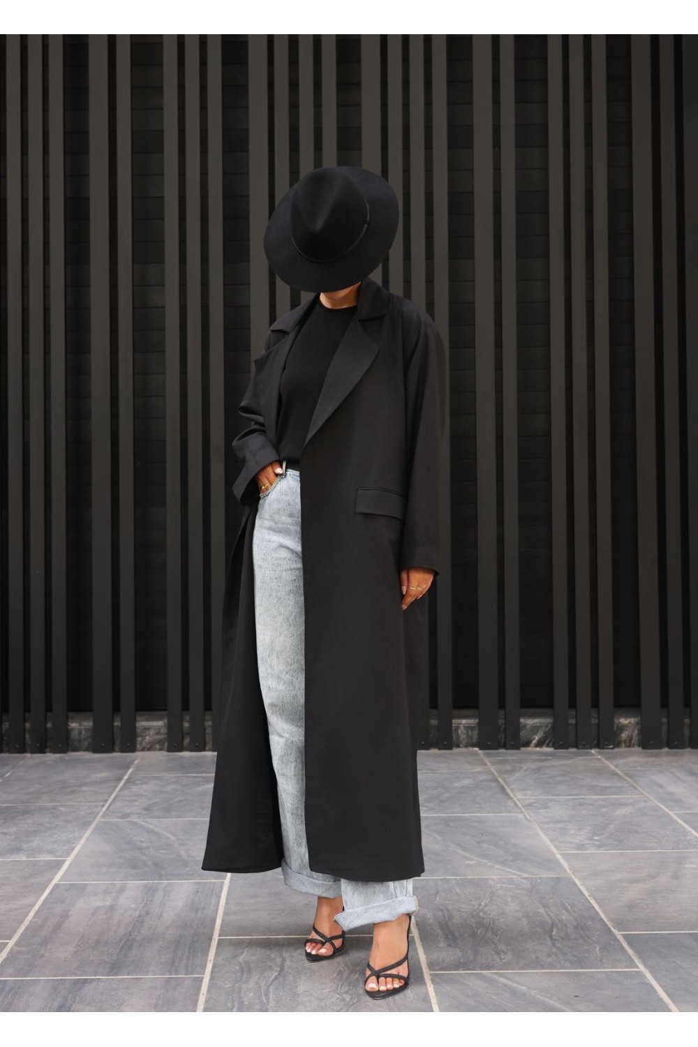 Il a une coupe juste parfaite et dispose de deux poches, une ceinture, un effet trench sur l’arrière et peut se porter ouvert ou fermé.