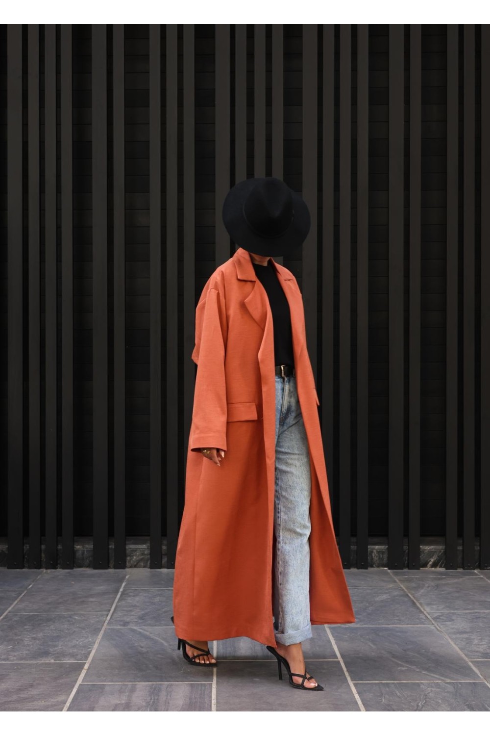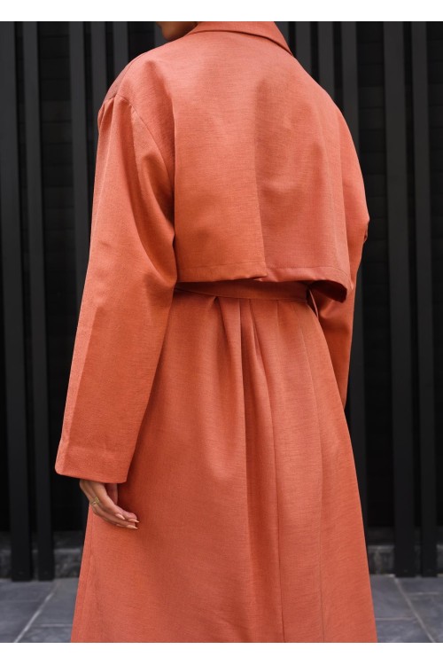 Il a une coupe juste parfaite et dispose de deux poches, une ceinture, un effet trench sur l’arrière et peut se porter ouvert ou fermé.