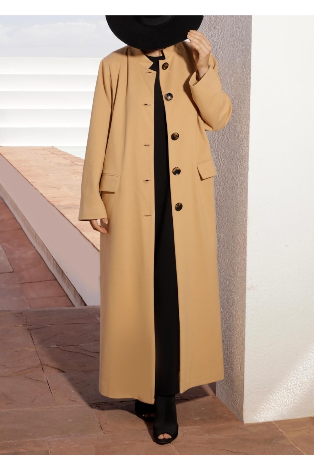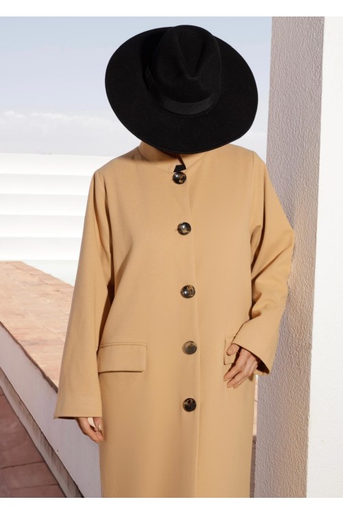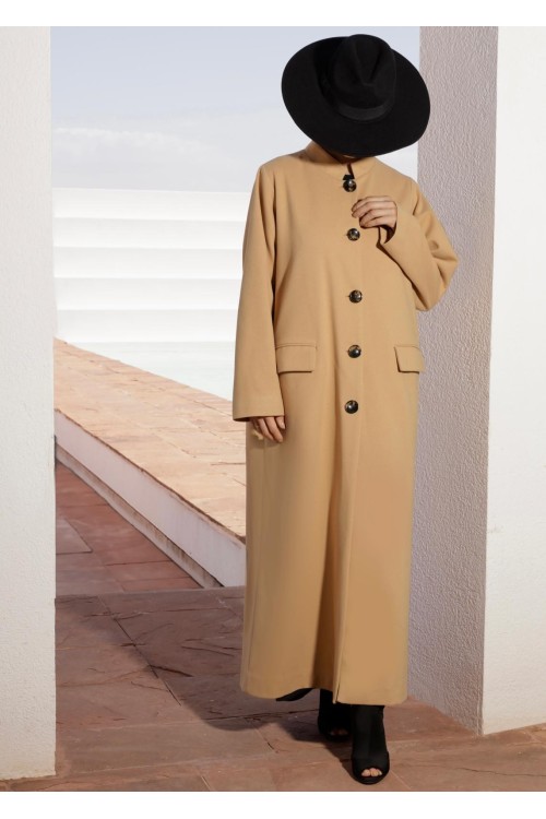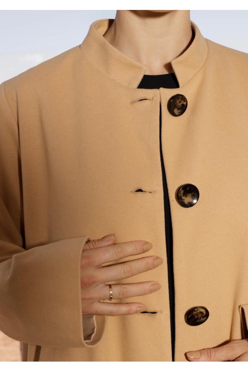 Le manteau Mao, un manteau au col mao comme son nom l’indique qui dispose de boutons tout le long, un style unique qui se porte aussi bien ouvert ou fermé, disposant de deux poches également.