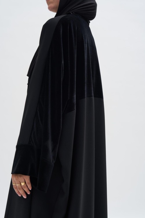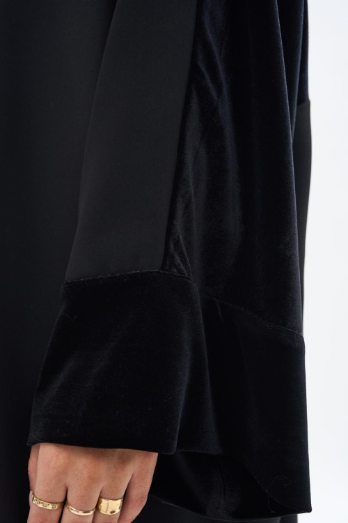 Elle dispose d'un détail en velou à l'arriere et aux manches, d'une coupe ample et de manches larges.