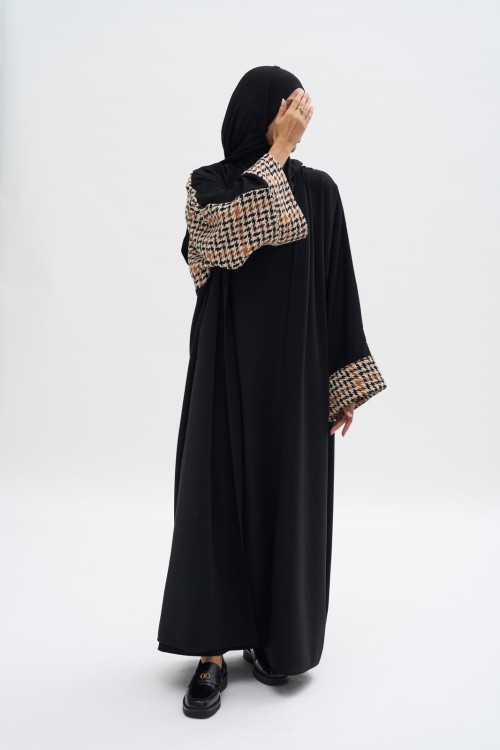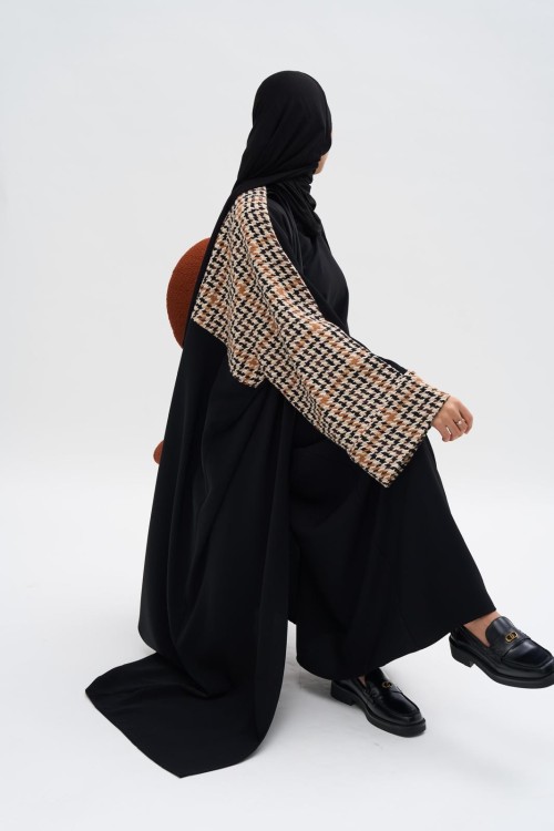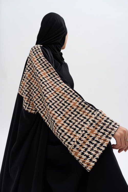 Elle dispose d'un détail en tweed à l'arriere et aux manches, d'une coupe ample et de manches larges.
