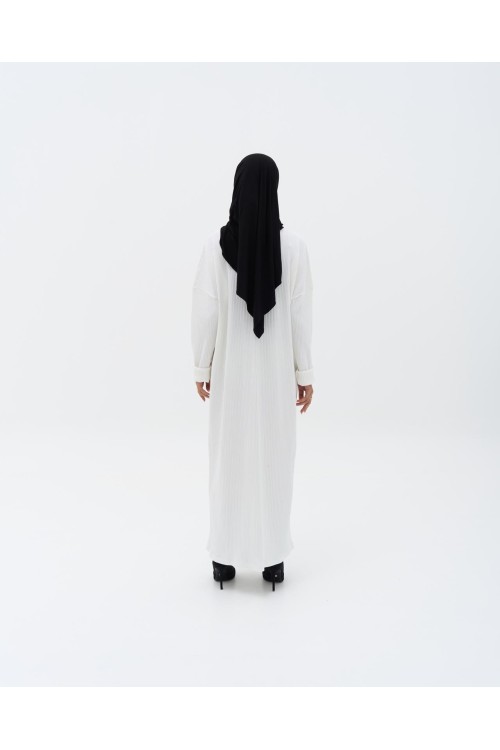 Notre robe côtelée séduit par sa simplicité élégante et sa coupe droite intemporelle. Dotée d’un col rond et de manches subtilement retroussées, elle est confectionnée en maille côtelée de haute qualité, alliant confort et style.