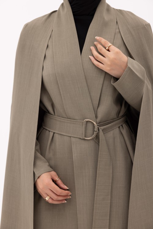 La cape Carolina se distingue par son design unique qui associe une veste à manches droites et une cape attachée. Confectionnée en rayonne et coton, elle peut se porter ceinturée pour structurer la silhouette ou laissée libre pour un tombé fluide. Une pièce qui apporte immédiatement allure et élégance.