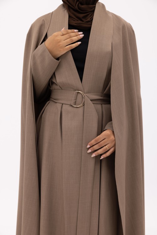 La cape Carolina se distingue par son design unique qui associe une veste à manches droites et une cape attachée. Confectionnée en rayonne et coton, elle peut se porter ceinturée pour structurer la silhouette ou laissée libre pour un tombé fluide. Une pièce qui apporte immédiatement allure et élégance.