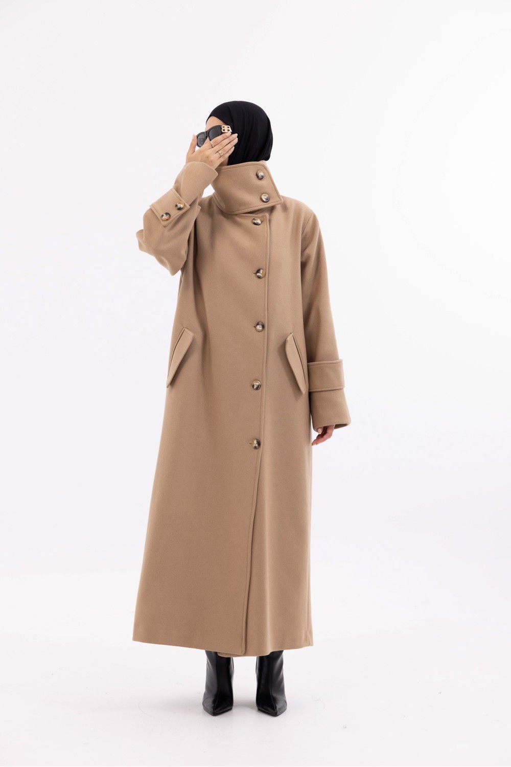Le manteau Marine présente une ligne élégante et structurée. Sa coupe longue est rehaussée d’un col montant et d’une rangée de boutons sur le côté, détail signature de son design. Les manches raglan et les surpiqûres apparentes soulignent la qualité de la confection. Entièrement doublé et doté de deux poches, il allie chaleur, style et fonctionnalité.