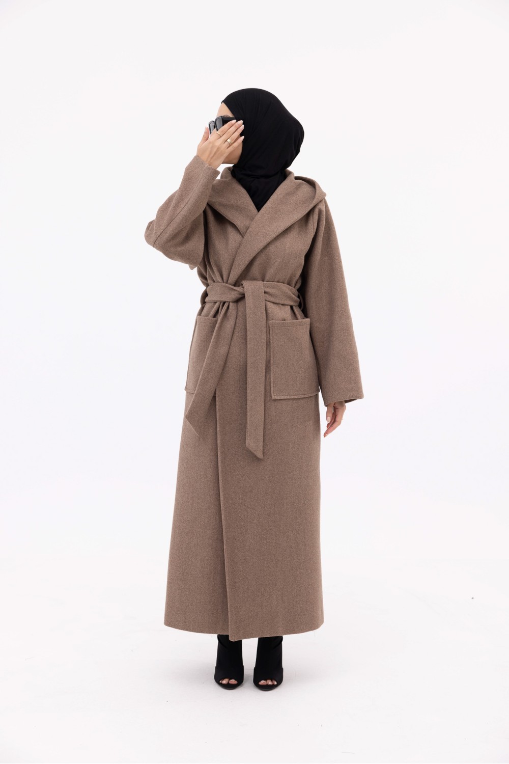 Le manteau Dina est un modèle intemporel, pensé pour allier confort et élégance. Il est doté d’une capuche, de deux grandes poches et d’une ceinture assortie, offrant une silhouette structurée et pratique pour un usage quotidien.