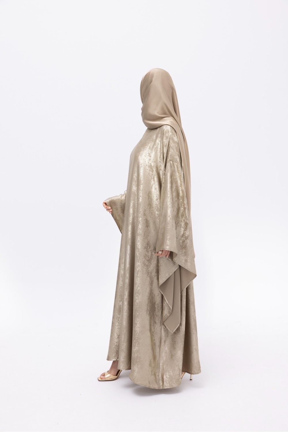 La robe Sana est une robe à l’allure moderne, pensée pour les événements et les occasions particulières. Le modèle présente un col haut, fermé à l’arrière par un bouton discret, pour une finition soignée. Toute la singularité de la pièce réside dans ses manches ultra amples, qui apportent une présence forte et une coupe majestueuse à la silhouette. La robe peut se porter librement ou ceinturée selon le rendu souhaité ; la ceinture est proposée séparément. Le jeu de matières a été travaillé avec soin, donnant à la pièce toute sa richesse et son caractère.