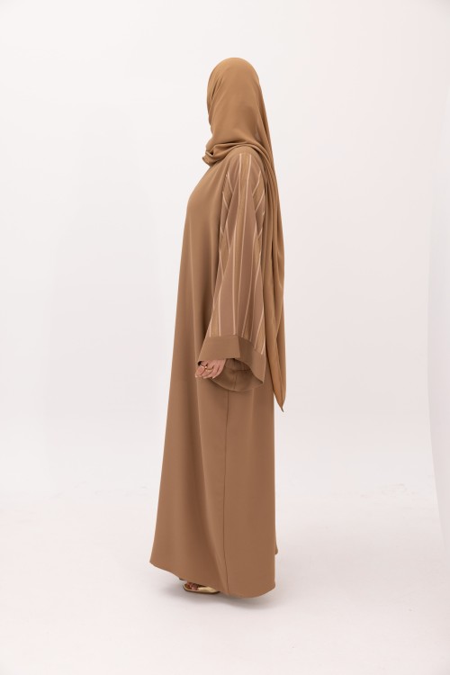 C’est une robe pensée pour les soirées de Ramadan comme pour l’Aïd, avec une coupe sobre et facile à porter.