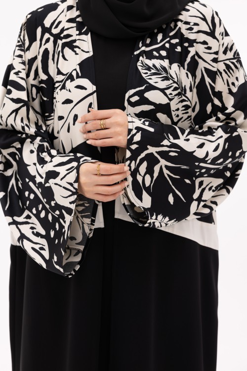 Pour celles qui recherchent une abaya avec un jeu de matières et de couleurs, facile à intégrer dans une tenue du quotidien.