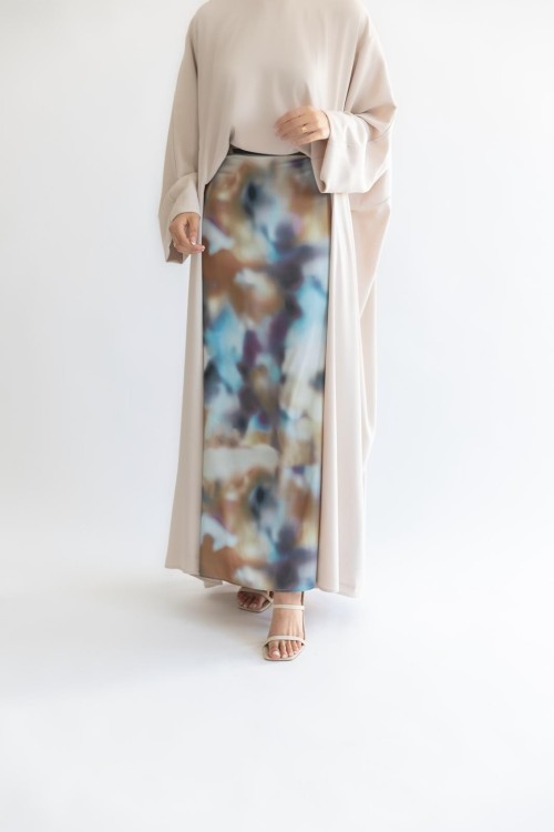 La jupe Malaysia est en satin de soie et dispose d'un elastique à l'arriere et une coupe à mi chemin entre la coupé sirène et évasée.